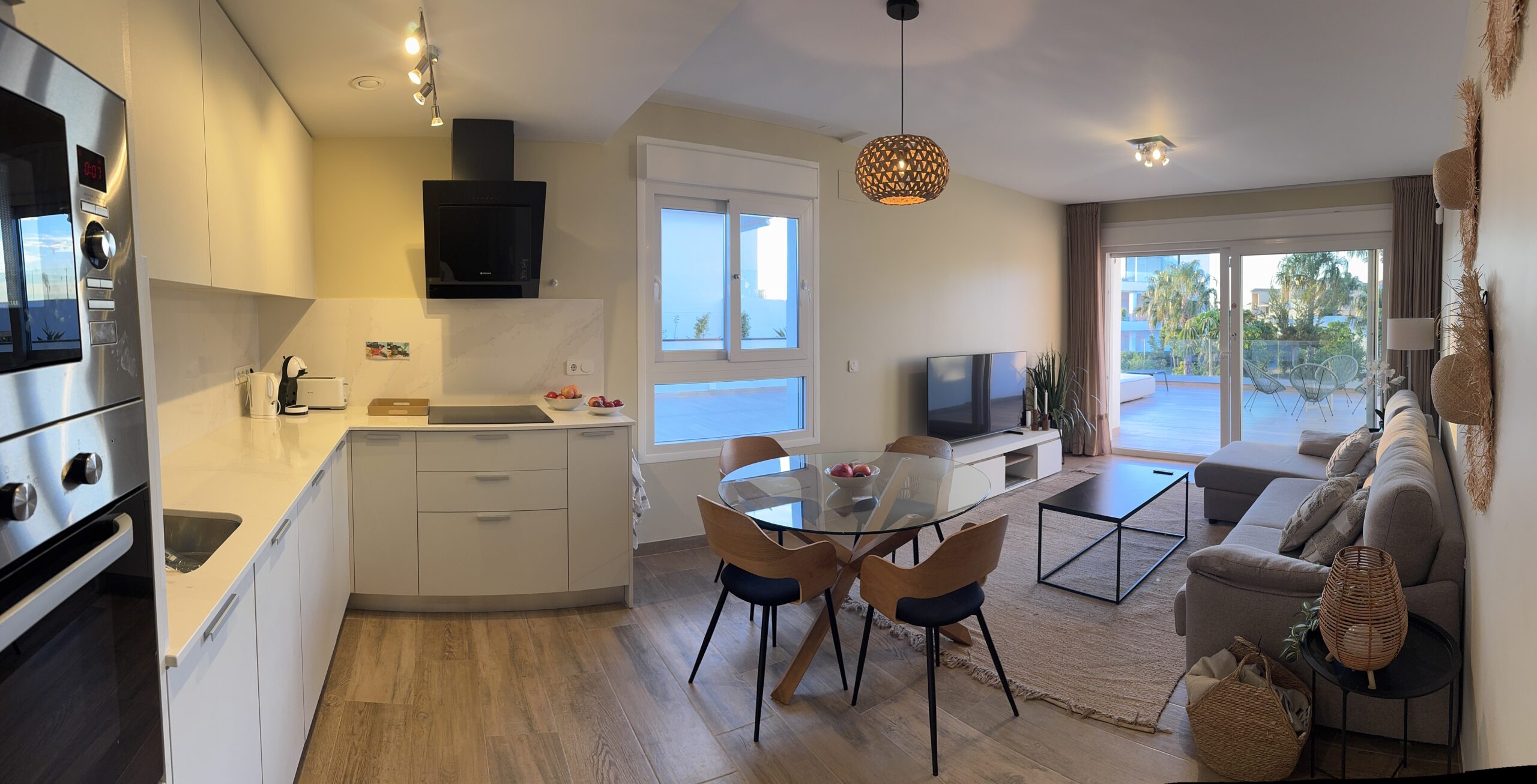 Residentie Bali is gelegen in Punta Prima ( La Ceñuela ) op 1.2 km van het strand en de boulevard van Punta Prima. Dit luxe appartement op de begane grond heeft 3 slaapkamers met ingebouwde kasten, 1 x 2 + 4 x 1 persoons ( met goede kwaliteitsbedden) en 2 badkamers met douche + douche voorziening beide voorzien van vloerverwarming. De woonkamer is uitgerust met een bank, eettafel + stoelen, high speed WiFi 300 mb, en een smart TV met veel zenders. De open keuken is volledig uitgerust met de nodige apparatuur, zoals een vaatwasser. Het appartement is volledig ingericht met geïntegreerde airconditioning, elektrische verwarmingselementen in alle kamers en gemotoriseerde zonwering. Aan de zijkant van het appartement bevindt zich het zuidelijk gelegen volledig ingerichte terras van 120 m² met uitzicht op de gemeenschappelijk tuin en het gemeenschappelijke zwembad van residentie Bali. Zowel zomers als in de winter is het goed vertoeven met zon en schaduw.