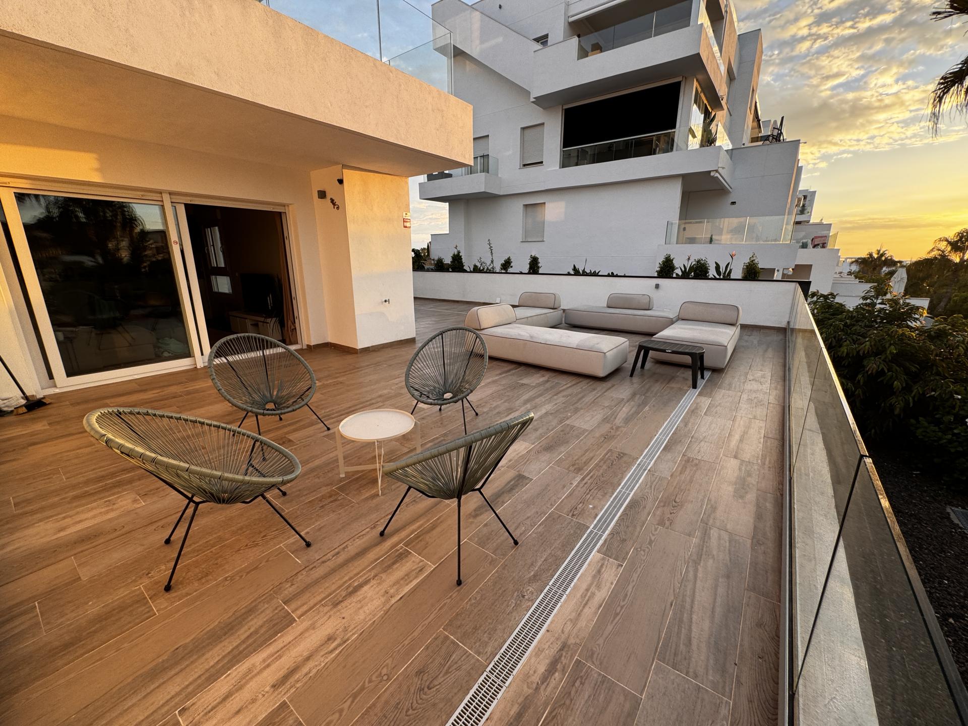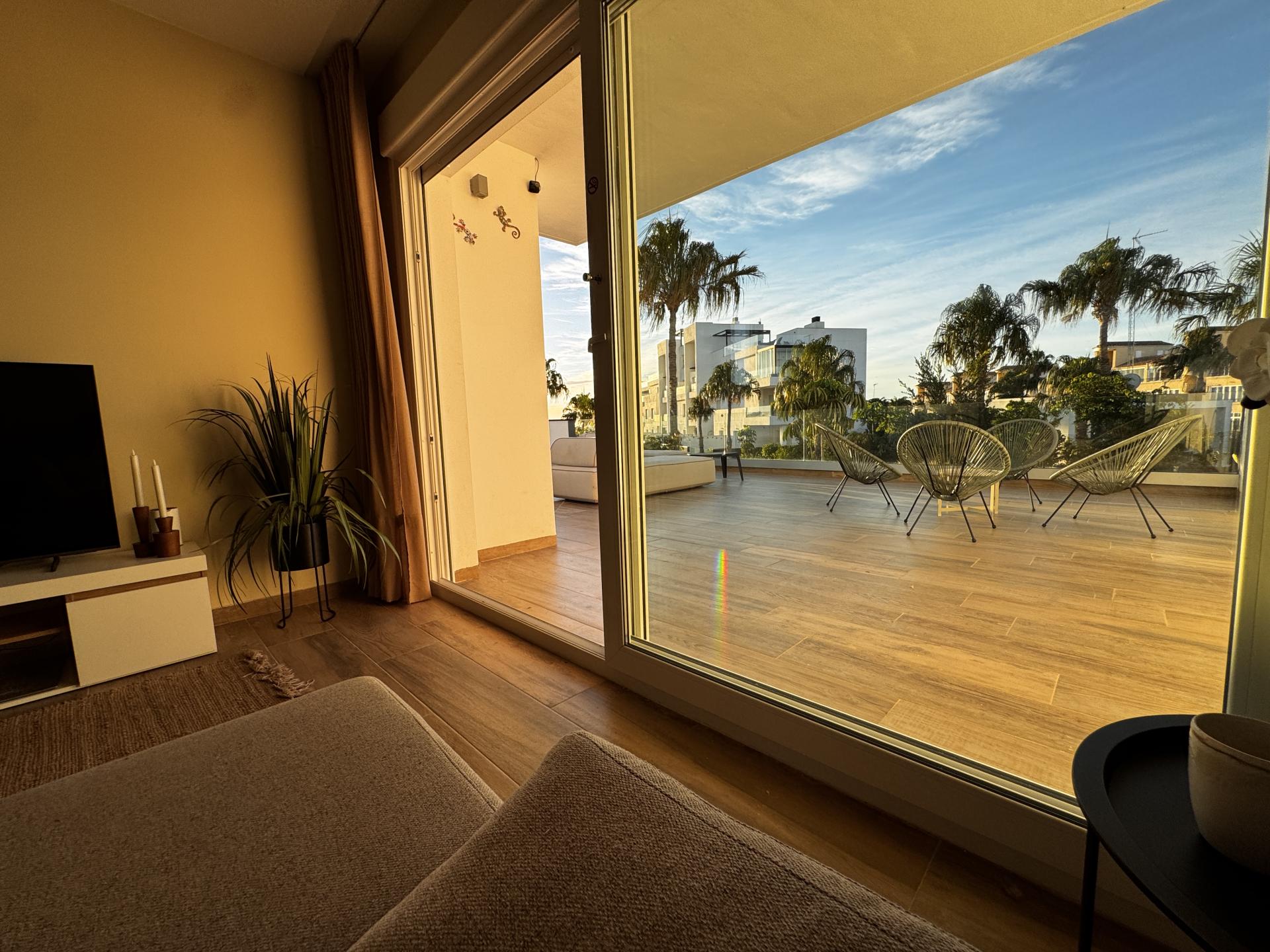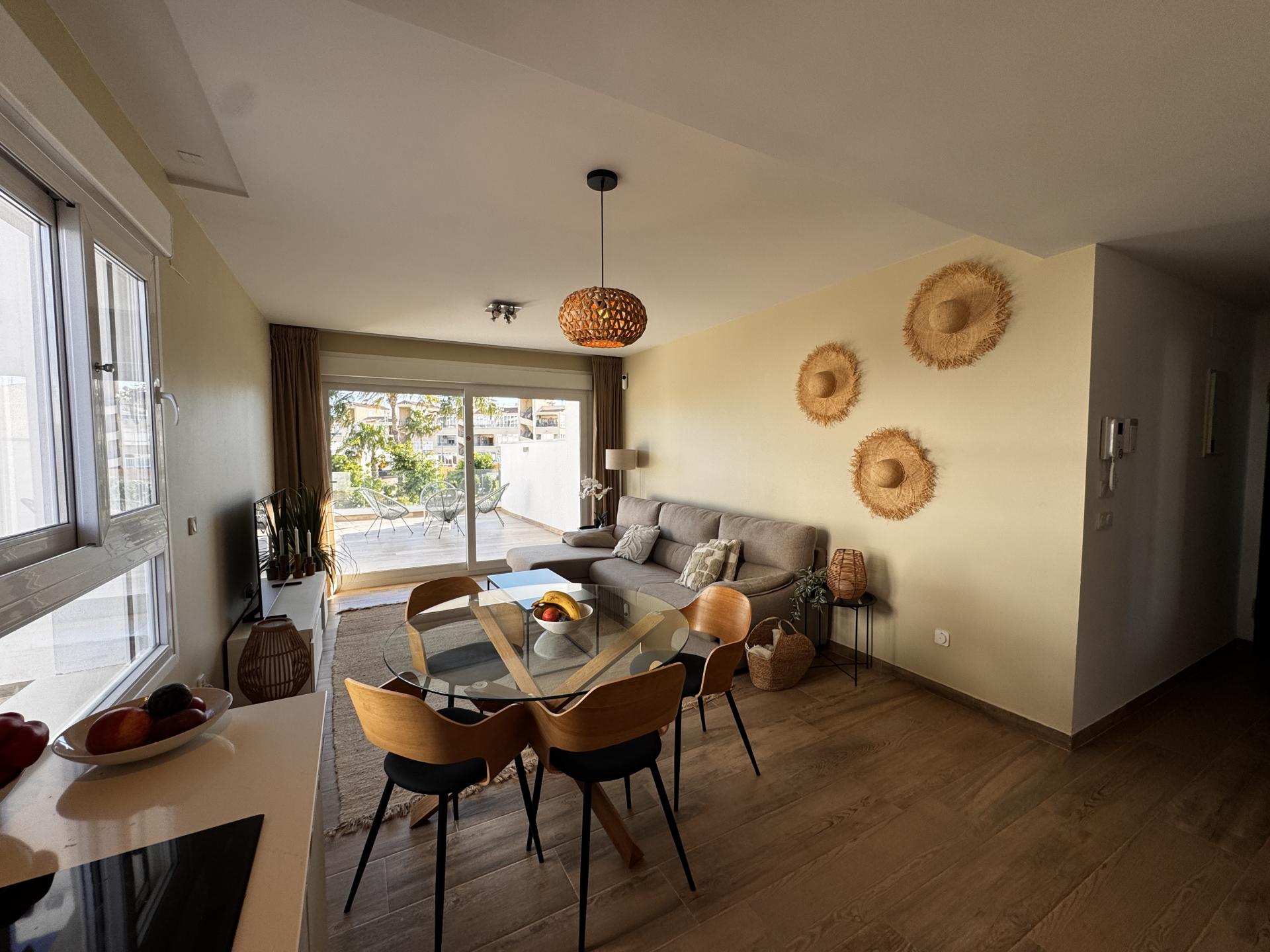 Punta Prima is een heerlijke plek om te verblijven en op een zeer centrale en mooie locatie. Ideaal voor een kort verblijf tijdens uw vakantie en/of  voor de lange termijn verblijf in de winter met de juiste faciliteiten en de hele dag zon op het terras. Ook voor liefhebbers van golf,  is het hier een goed toeven. Dit complex is gelegen in één van de nieuwste woonwijken van Punta Prima, slechts 13 minuten lopen van het Punta Prima strand. Alle voorzieningen die u verwacht nodig te hebben, zoals een divers aanbod van winkels, bars, restaurants en supermarkten zijn aanwezig en allemaal op loopafstand.