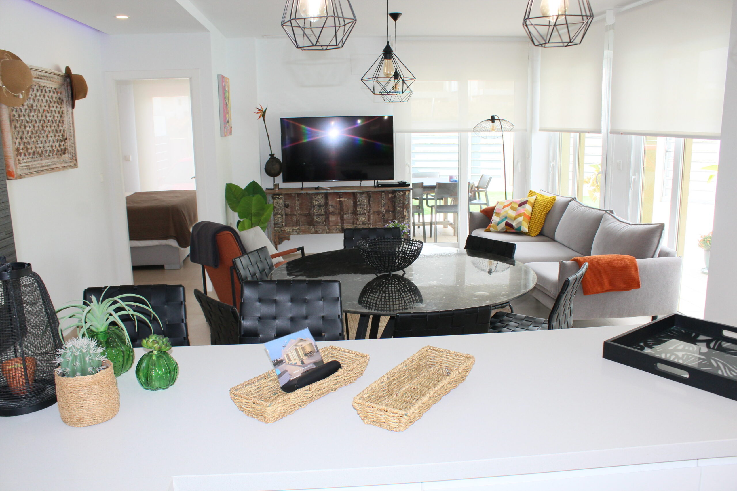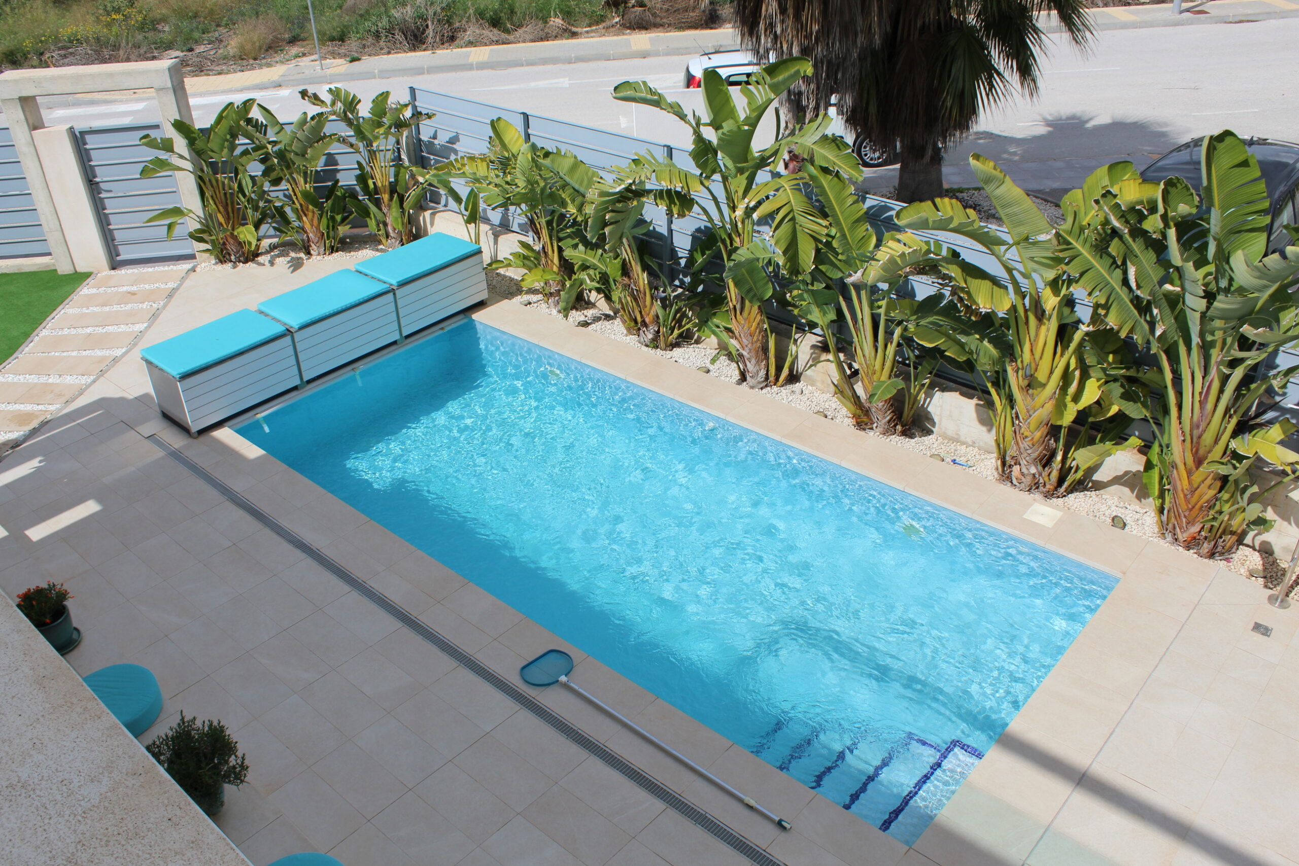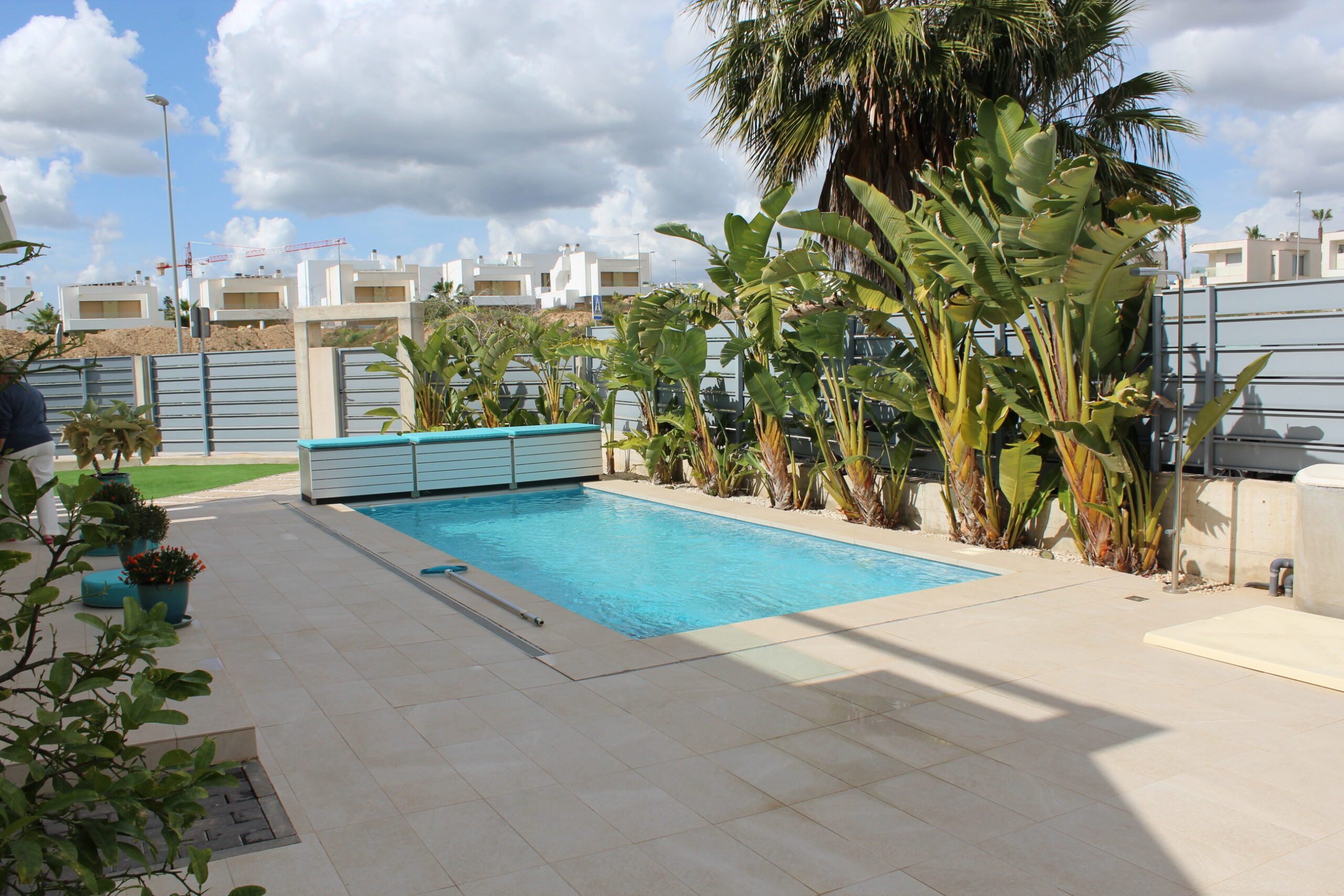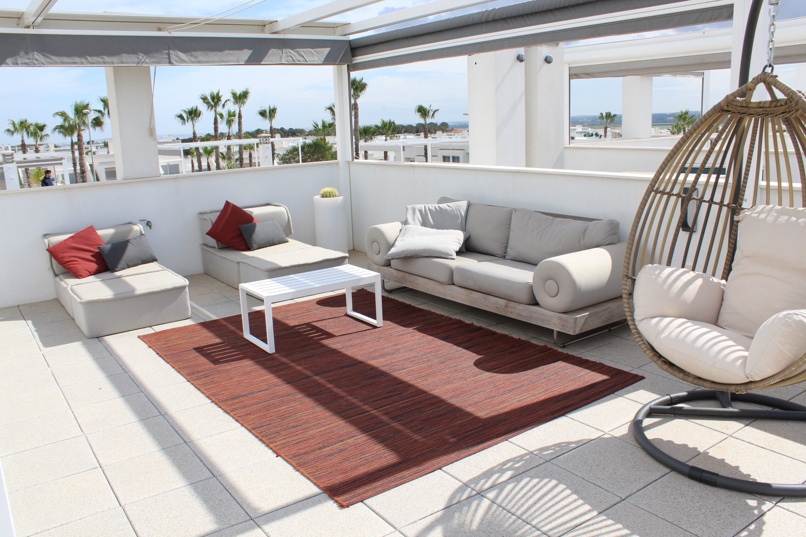 Deze prachtige ruime, moderne vrijstaande vakantievilla uit 2022 is gelegen in de wijk van Vista Bella Golf. De vakantievilla van 120 m2, beschikt over 3 slaapkamers waarvan 2 met 2 keer enkele bedden en 1 slaapkamer heeft een twee persoons bed.  Alle slaapkamers hebben inbouwkasten en een centraal geregelde airco warm en koud. De bakamers hebben een beiden een inloopdoche en zijn en-suite. De ruime woonkamer kijkt uit over het prive zwembad van 5 x 10 meter en heeft een smart TV met vele zenders, airco, modern en comfortabel meubilair. De open keuken met alle inbouw apparatuur is verbonden met de woonkamer en gescheiden door een bar. Er is ook een berging voor o.a. de wasmachine. Vanaf het ruime dakterras van 50 M2 voorzien van een loungeset en een relax-stoel, heeft u een fraai uizticht over de omgeving. U kunt hier heerijk genieten van rust en prvacy tijdens uw verblijf in deze vakantievilla. Heerlijk bij het zwembad met een cocktail.