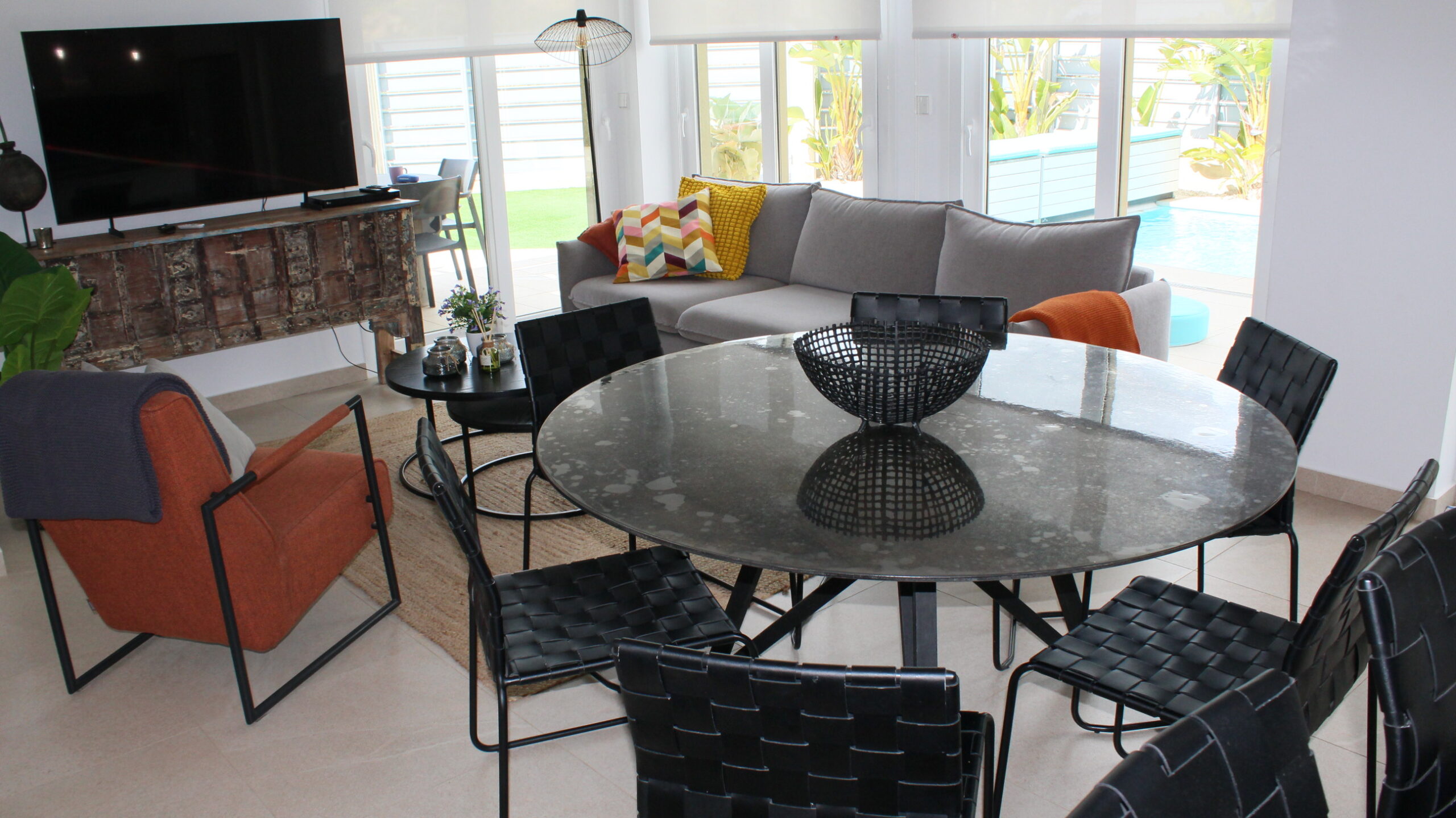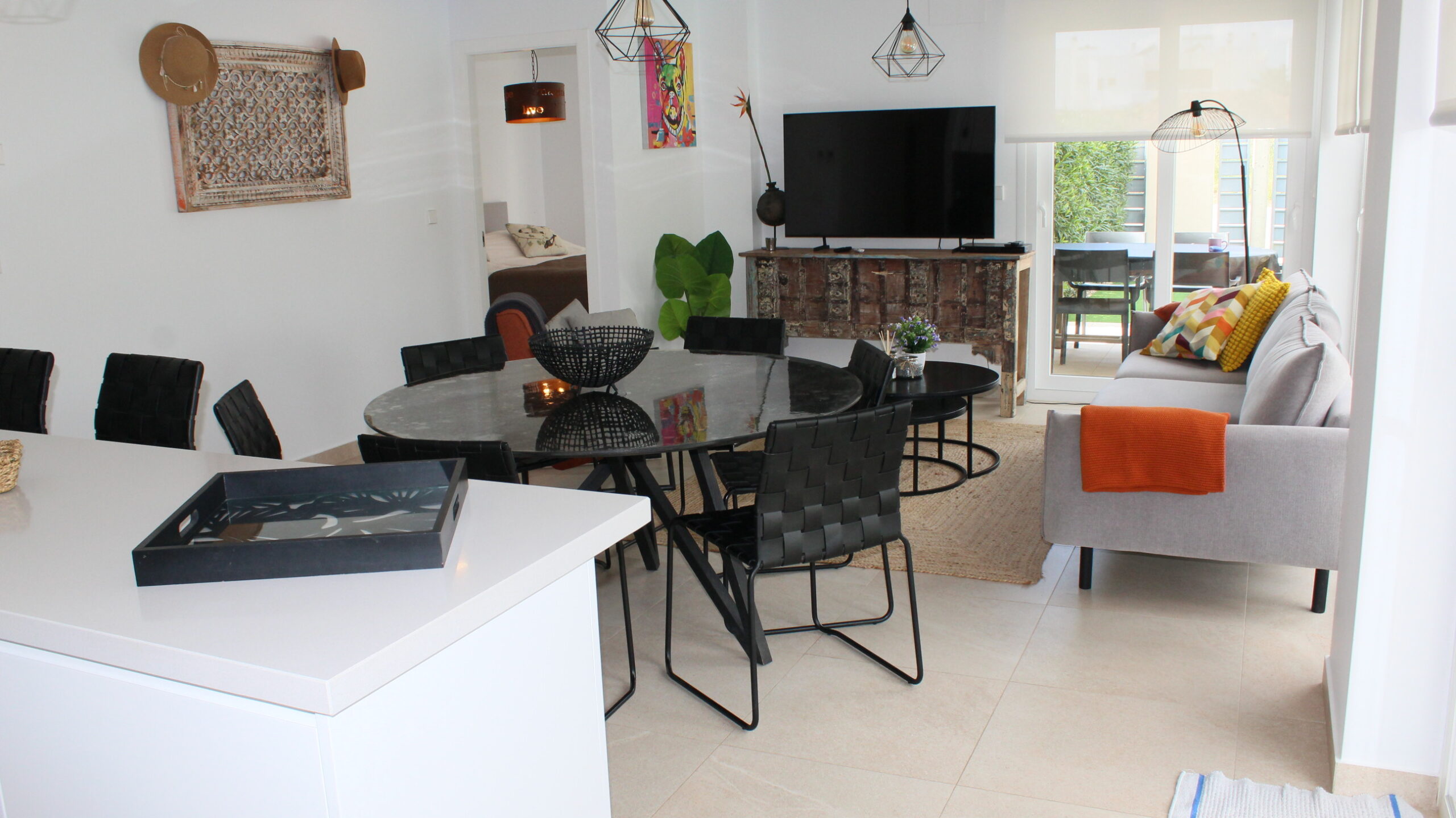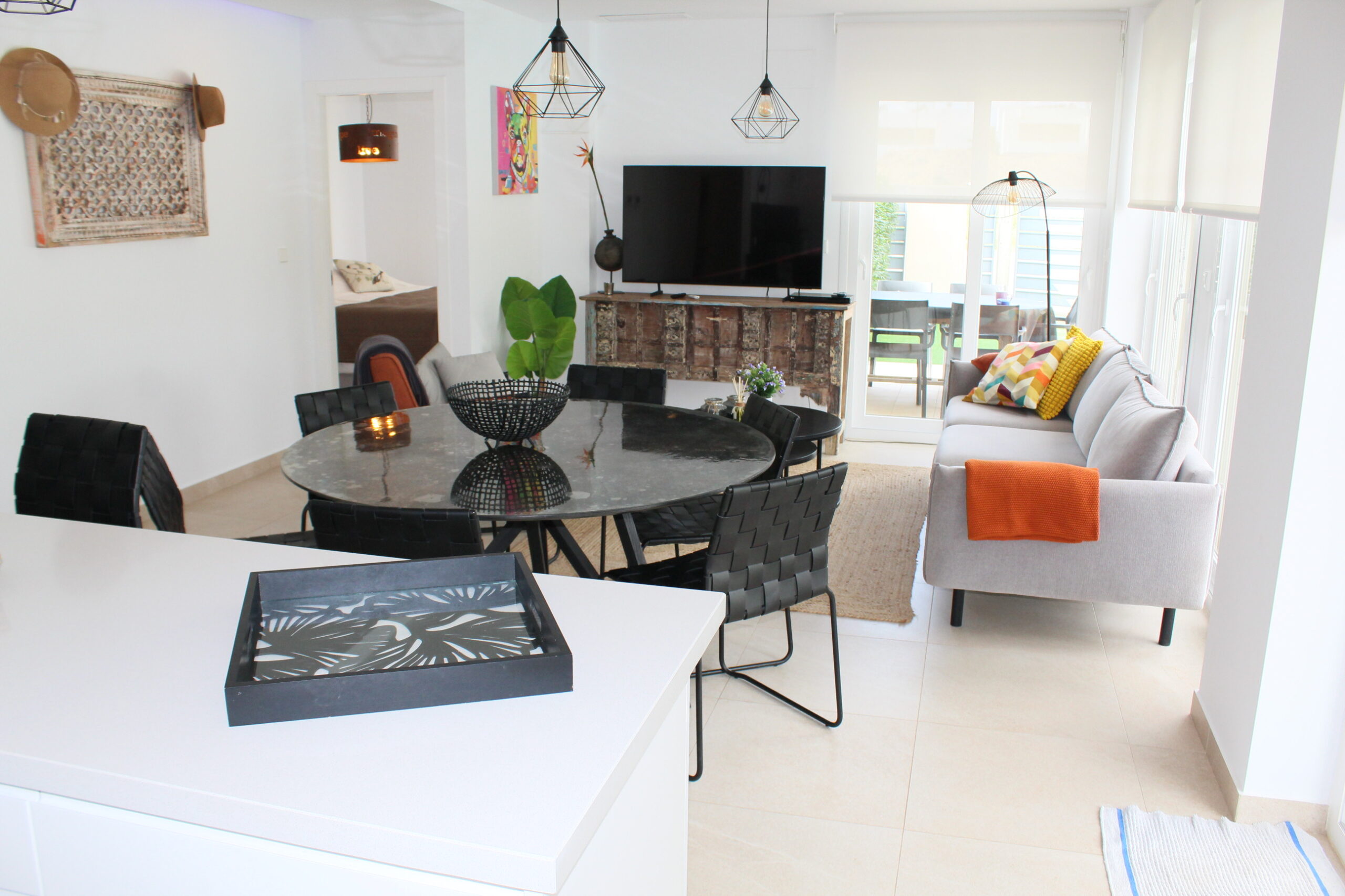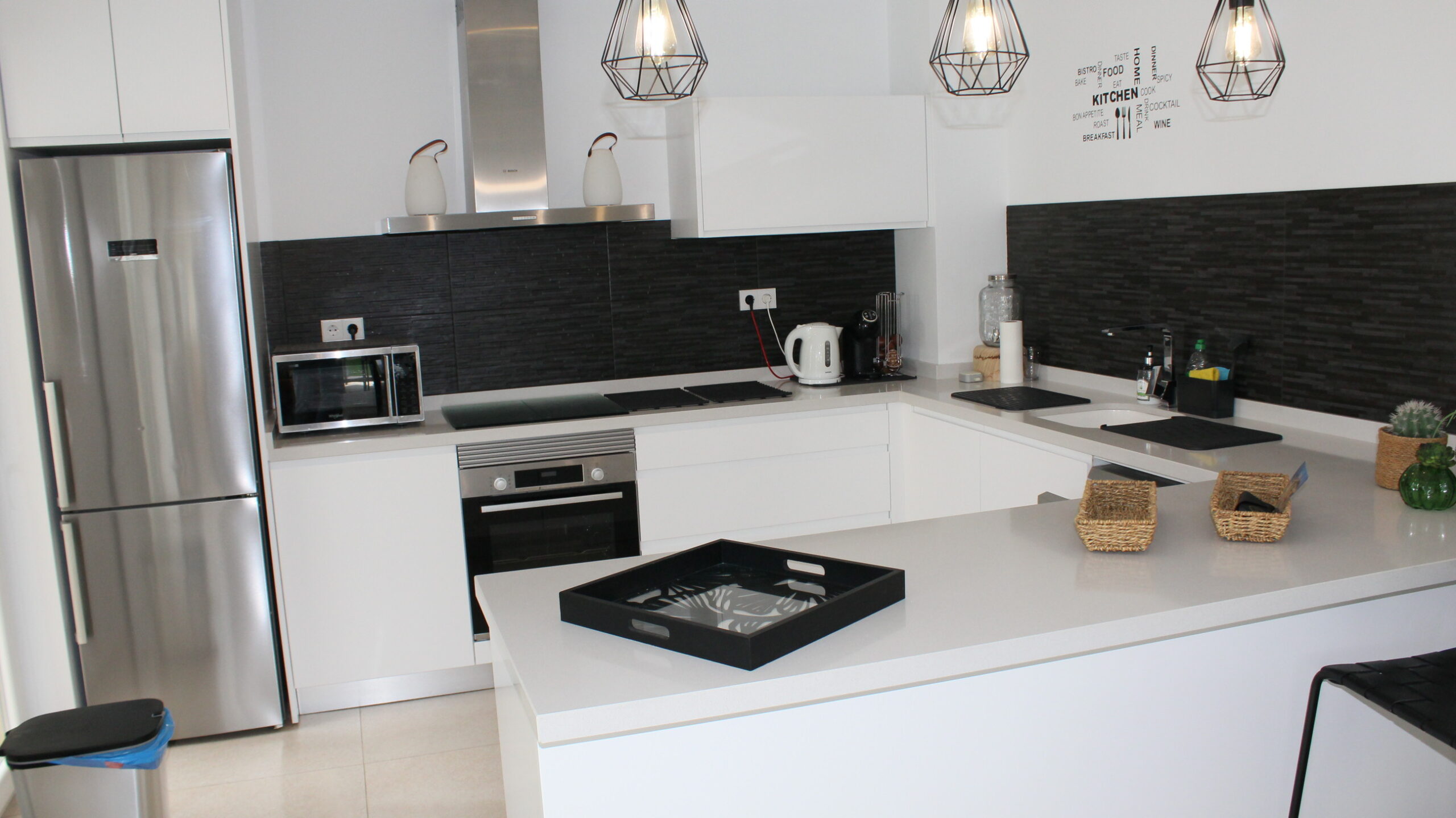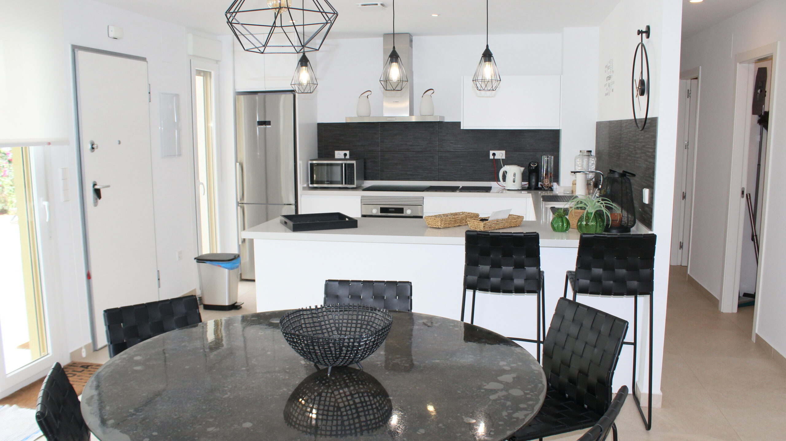 Deze prachtige ruime, moderne vrijstaande vakantievilla uit 2022 is gelegen in de wijk van Vista Bella Golf. De vakantievilla van 120 m2, beschikt over 3 slaapkamers waarvan 2 met 2 keer enkele bedden en 1 slaapkamer heeft een twee persoons bed.  Alle slaapkamers hebben inbouwkasten en een centraal geregelde airco warm en koud. De bakamers hebben een beiden een inloopdoche en zijn en-suite. De ruime woonkamer kijkt uit over het prive zwembad van 5 x 10 meter en heeft een smart TV met vele zenders, airco, modern en comfortabel meubilair. De open keuken met alle inbouw apparatuur is verbonden met de woonkamer en gescheiden door een bar. Er is ook een berging voor o.a. de wasmachine. Vanaf het ruime dakterras van 50 M2 voorzien van een loungeset en een relax-stoel, heeft u een fraai uizticht over de omgeving. U kunt hier heerijk genieten van rust en prvacy tijdens uw verblijf in deze vakantievilla. Heerlijk bij het zwembad met een cocktail.